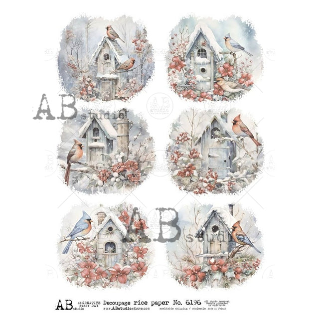 AB Studios Winter Birdhouses Rice Paper